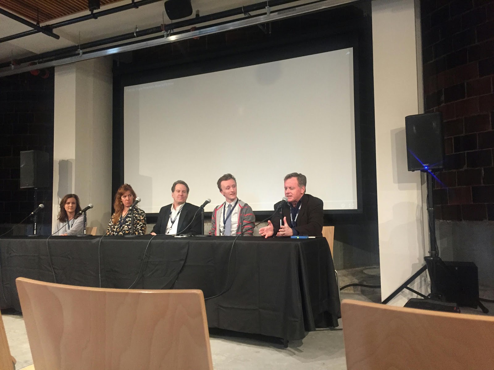 At the April 9th, 2016 Minneapolis St. Paul International Film Festival discussion panel, consisting of actors (From left) Kirsten Gregorson, Kate Nowlin, Peter Moore, Paul Cram and Patrick Coyle. The topic of the panel was Acting & Casting. Securing the best possible acting cast and working in film.